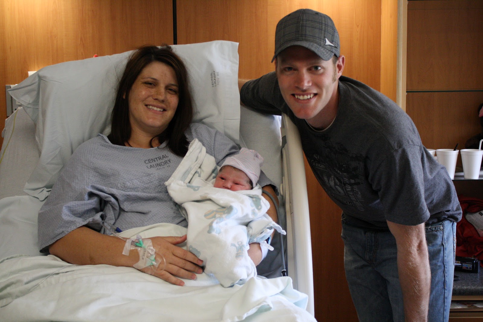Once my epidural was in, I was in heaven. I even got a few cat naps in:). At 6:15, I was dilated to a 2 and was put on oxygen to keep Hazyn's heart rate up. At 7:15 I was dilated to a 3 so we decided to call our families. We told them they didn't need to hurry because it would probably be a while before she was born. None of them listened (thank goodness).